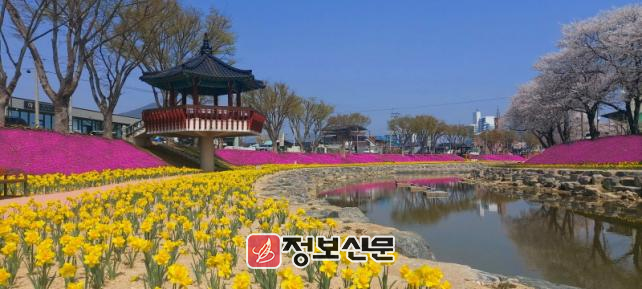 민선 8기 5대 역점사업 중 하나인‘경천․양지천 수변 종합개발사업’의 일환으로 조성된 양지천 산책로 약 2km구간에 꽃잔디와 수선화, 튤립 약 70만 본이 활짝 피어나, 봄나들이객들의 발길을 사로잡고 있다.