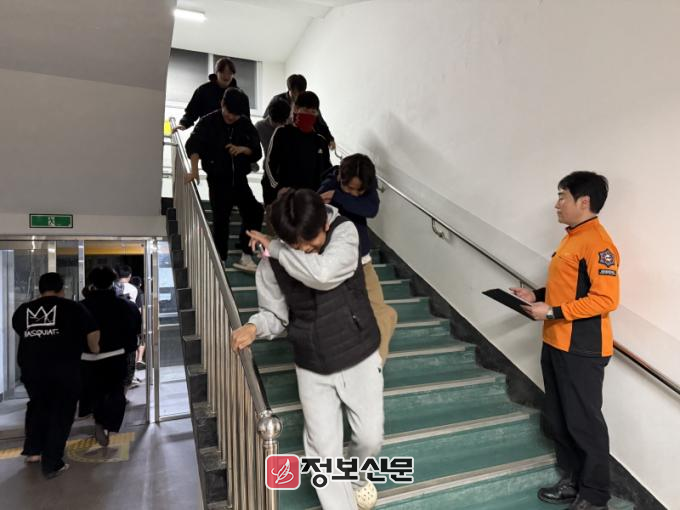 이번 훈련에는 학생과 교직원 등 120여 명이 참석해 화재 발생 상황을 가정하고 신속한 대피를 위한 실전 훈련을 진행했다.