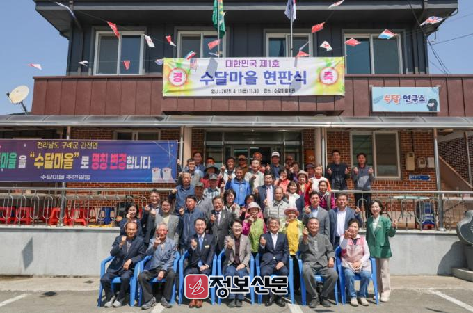 구례군은 4월 11일, 간전면 수달마을에서 김순호 군수를 비롯한 지역 주요 인사들과 마을 주민 등 100여 명이 참석한 가운데 마을 명칭 변경 현판식 행사를 개최했다고 밝혔다.