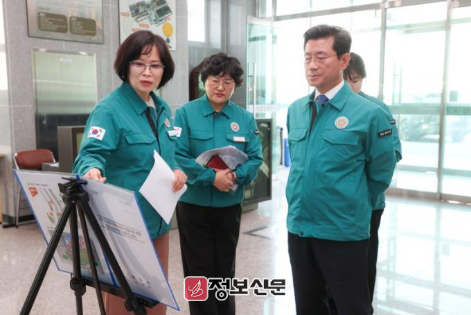 정 시장은 관계부서의 사업 추진 현황을 보고 받은 뒤 유수지 면적, 배수펌프장 시설용량, 배수로 정비구간 등을 꼼꼼히 확인했다. 아울러, 청암리 인근 농경지의 염수 피해를 줄이고 안정적인 농업용수를 공급하기 위해 담수화 방안을 검토할 것을 주문했다.