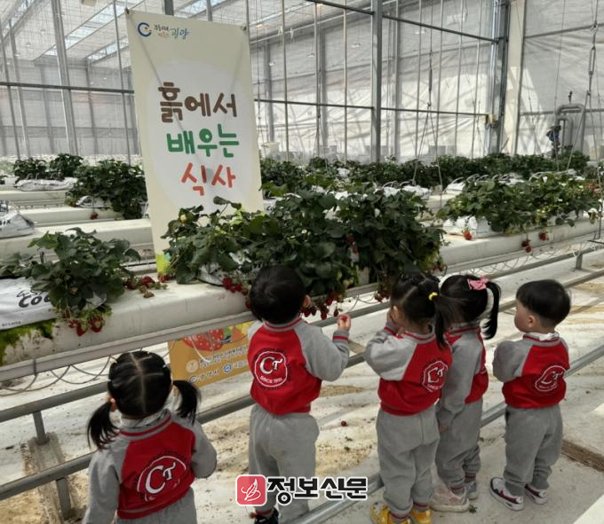 어린이들은 유리온실을 견학하며 식물이 자라는 환경과 성장 과정을 관찰하고 작물을 키우는 방법에 대한 설명을 들었다. 또한, 딸기, 바나나, 토마토 등 다양한 작물을 직접 보고 먹어보며 식재료에 대한 흥미와 관심을 높이는 시간을 가졌다.
