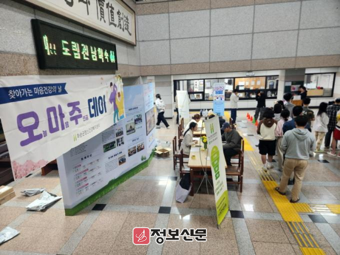 이날 캠페인에서는 심적으로 힘들 때 도움받을 수 있는 기관을 안내해 주고, 입사생을 대상으로 우울·불안·스트레스 등 정신건강 자가 선별검사와 함께 정신건강전문요원들의 상담으로 구성되어 진행됐다.