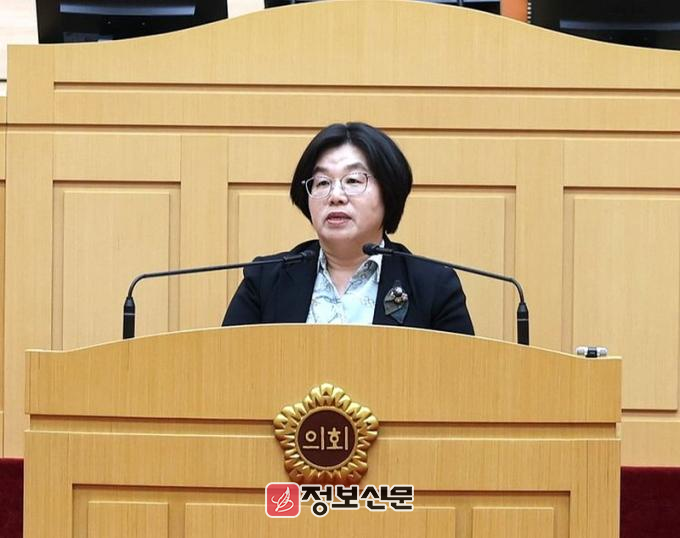 ![]() 15일, 제389회 임시회 제2차 본회의에서 오미화 의원이 5분 발언을 하고 있다. |