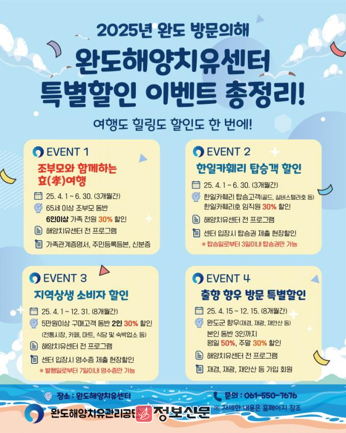 ![]() 완도해양치유센터, 2025완도방문의 해 특별할인 이벤트 진행 |