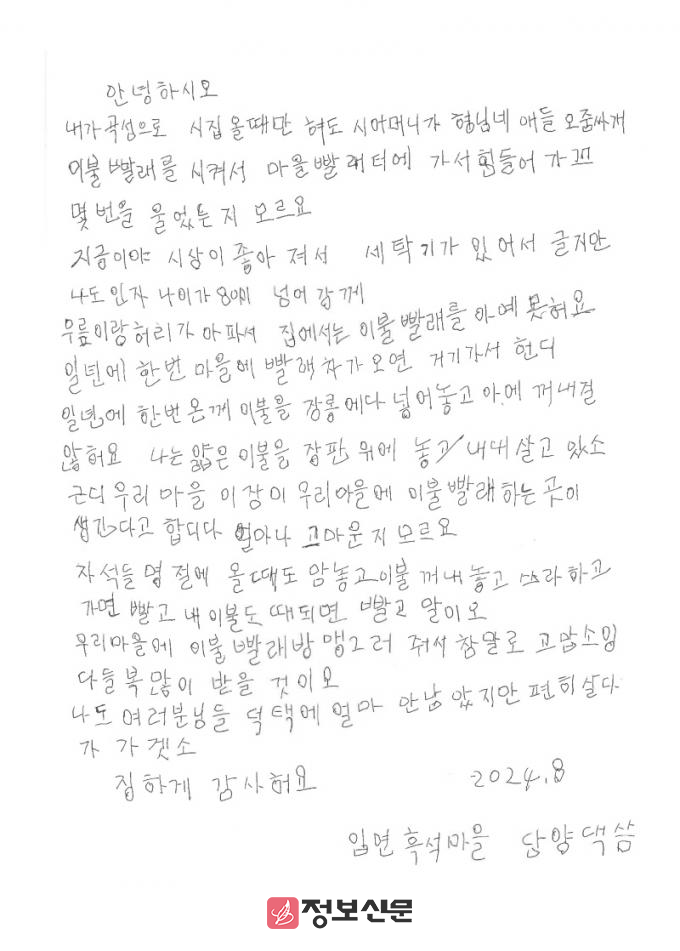 ![]() 곡성군, 할머니의 손편지로 이룬 마을빨래방 프로젝트 모금 성공 |