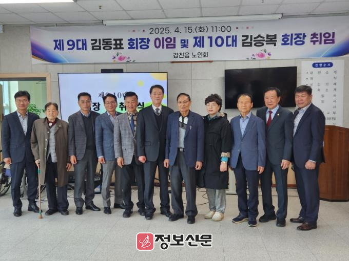 이임하는 김동표 회장은 재임 중 경로당 운영을 내실화하고 어르신 복지 향상에 힘써, 강진읍 노인회의 화합과 발전에 크게 이바지했다, 신임 김승복 회장은 강진읍장과 강진군 노인회 사무국장을 역임한 바 있어 풍부한 행정 경험과 지역사회에 대한 깊은 이해를 갖춘 인물로 평가받고 있다.