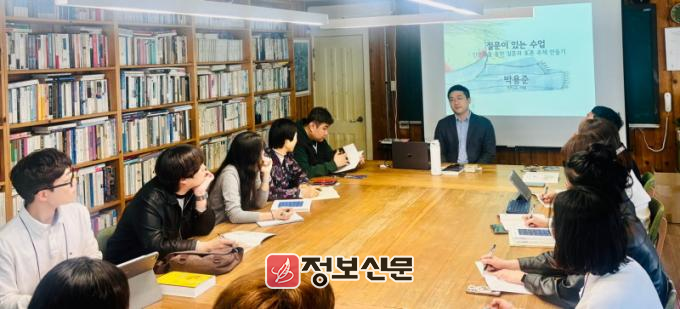 ![]() 전남교육청 2025. 독서인문선도교실 (중등)교사들이 인디고서원에서 청소년 인문학 및 토론교육을 연구하고 있다. |