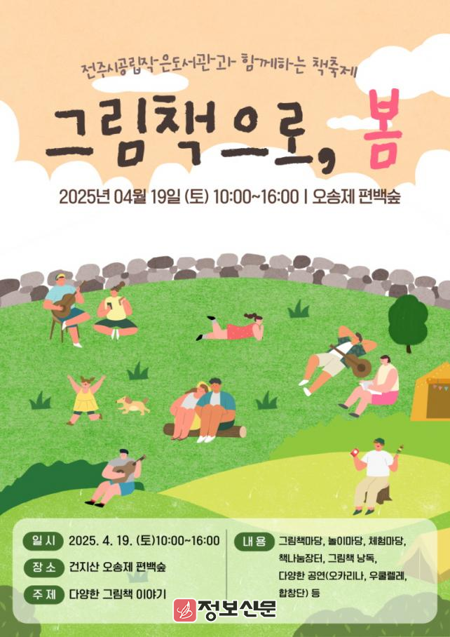 전주시 공립작은도서관운영협의회는 오는 19일 건지산 오송제 편백숲 일원에서 책 축제 ‘그림책으로, 봄’을 개최한다.