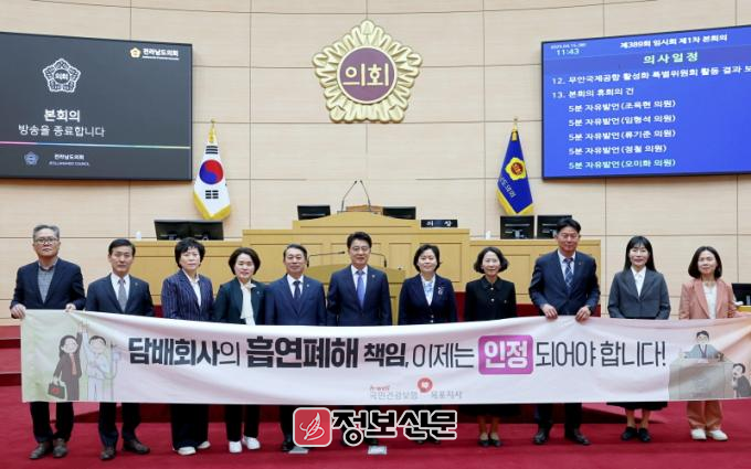 ![]() 전라남도의회, 담배 제조물의 결함 인정 및 사회적 책임 촉구 결의안 채택 |