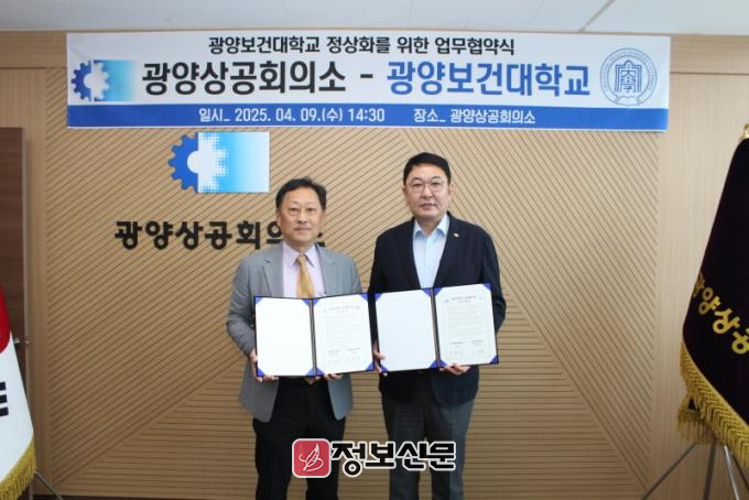 광양보건대학교 김주명 부총장은 필요한 인재 양성을 위한 계약 학과 등 광양상공회의소와 공동으로 할 수 있는 사업이 많다고 하며 이를 위해 대학 정상화를 꼭 해내겠다고 하였습니다. 이날 행사는 광양상공회의소와 광양보건대학교 관계자가 참석한 가운데 이루어졌습니다.