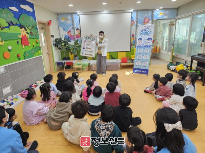 이번 교육은 ‘아기상어 손씻기 챌린지’ 등 영상 시청, 올바른 손 씻기 체험교실 등으로 이뤄져 있다.