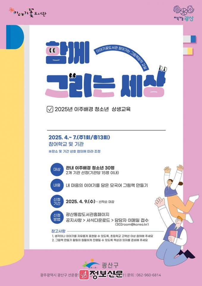 광산구는 이야기꽃도서관이 이주배경 청소년을 위한 ‘찾아가는 그림책 창작교실’을 운영한다고 밝혔다.