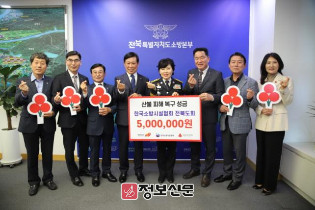 이번 성금은 지난 3월 25일 정읍시 소성면 금동마을에서 발생한 대형 산불로 피해를 입은 주민들의 일상 회복과 복구 지원을 위해 마련된 것으로, 한국소방시설협회 임원들의 자발적인 모금을 통해 조성되었으며, 사회복지공동모금회를 통해 금동마을 주민들에게 전달될 예정이다.