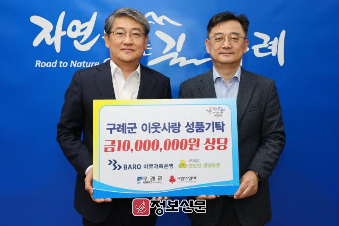 이번 기탁식은 2022년 구례군과 바로저축은행이 체결한 1사1촌 상생 협약의 일환으로 진행됐다. 바로저축은행은 해당 협약을 통해 5년간 총 1억 원 기탁을 약정했으며, 현재까지 7천만 원을 기탁하였다.