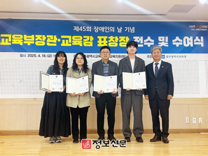이날 광주선명학교 이제나 교사, 광주선우학교 이순영 교사, 은혜학교 박석일 교사 등은 교원 부분, 시교육청 박규성 주무관은 일반직 공무원 부분 등 4명이 교육부장관 표창을 받았다.