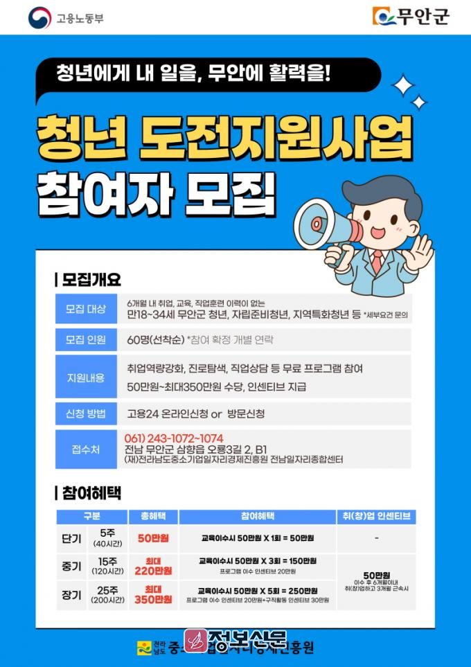 ![]() 무안군, 청년도전지원사업 참여자 모집 |