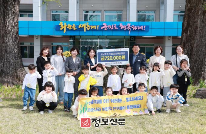 화순나라어린이집은 지난 3월 22일 발생한 초대형 산불로 엄청난 피해를 당한 영남 지역민을 위해 어린이집 소속 원아·학부모·교원 등이 십시일반 모금한 성금 72만 원을 기부했다. 기부한 성금은 전남사회복지공동모금회를 통해 영남 산불 피해 지역에 전달될 계획이다.