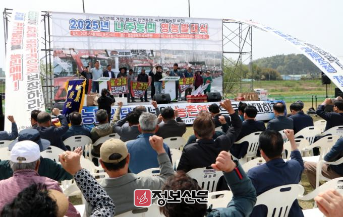 ![]() 나주농민회와 나주시여성농민회가 공동 주관한 ‘2025년 농업인 영농발대식’이 18일 나주영산강둔치체육공원에서 농업인 1500여명이 참석한 가운데 개최됐다. (사진제공-나주시) |