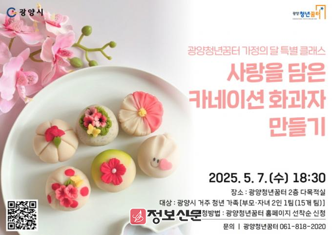 조동수 광양시 청년일자리과장은 “가족들이 함께 화과자를 만들며 평소 나누지 못했던 생각과 감정을 전하고, 따뜻한 마음을 표현할 수 있는 기회가 되길 바란다”며 “어버이날을 맞아 기획된 이번 프로그램에 많은 관심과 참여를 부탁드린다”고 말했다.