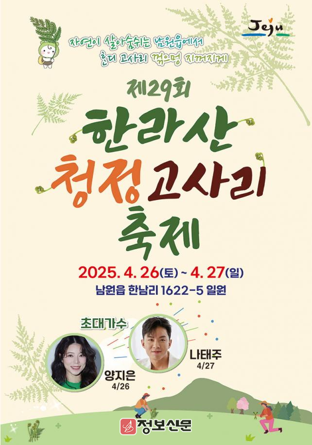 ![]() 서귀포시, 제29회 한라산 청정 고사리 축제 4월 26 ~ 27일 개최 |