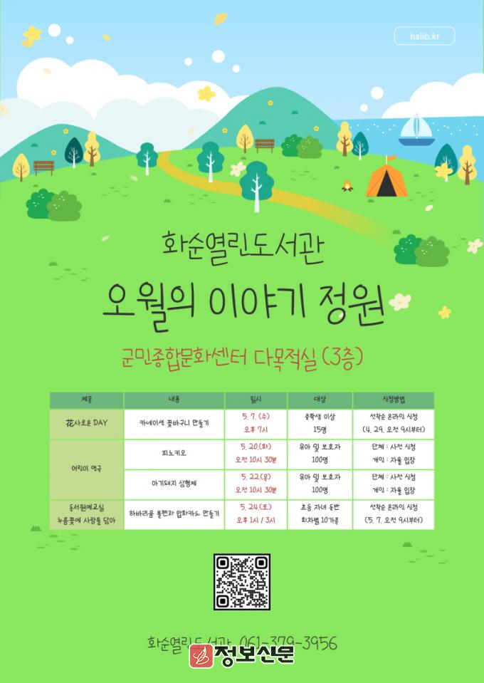 ![]() 화순열린도서관, 가정의 달 행사 “오월의 이야기 정원” 운영 |