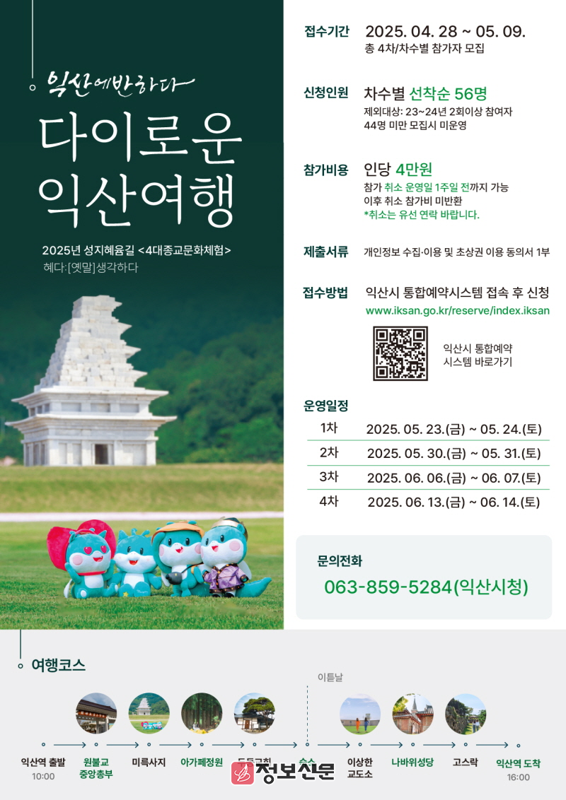 ![]() 익산시, '성지혜윰길 다이로운 익산여행' 운영 |