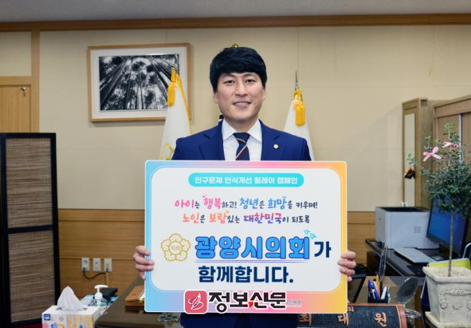 ![]() 광양시의회 최대원 의장, 인구감소 대응 릴레이 캠페인 동참 |