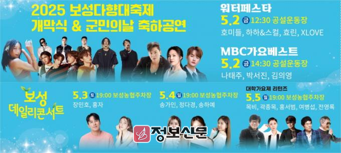 ![]() 보성군, 보성다향대축제 속 또 하나의 즐거움 5월 2일부터 5일까지 축하공연 개최 |
