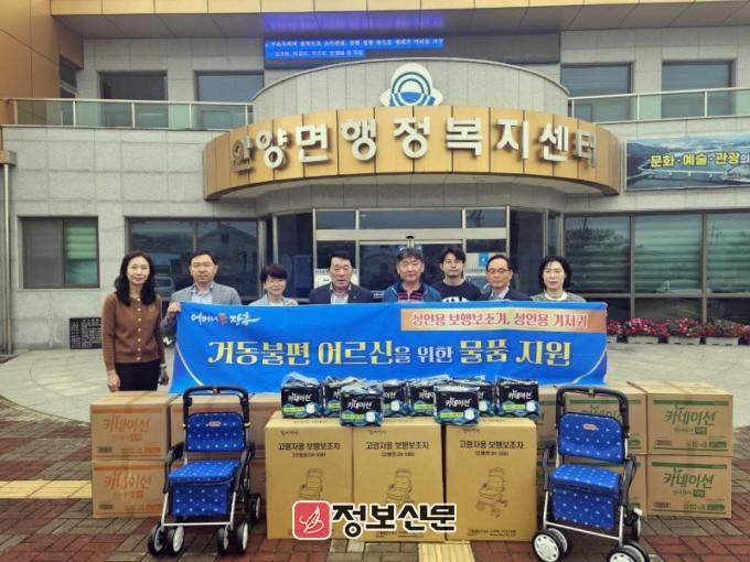 2024년 첫 시작으로 2년째 추진하고 있는 특화사업으로, 거동불편 어르신 42가구 대상으로 420만원 상당 맞춤형 복지 물품(성인용보행기 15개, 성인용기저귀 27박스)을 제공했다.