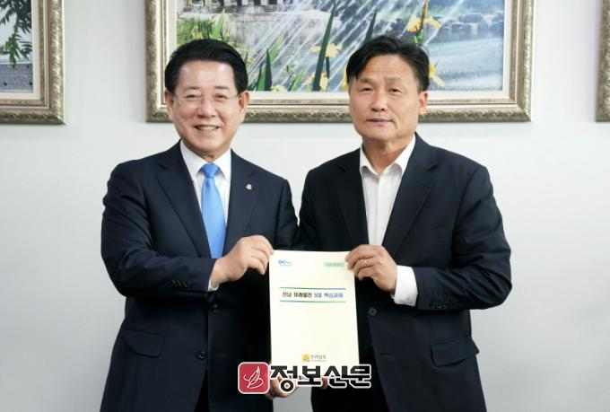 주요 건의 과제는 ▲석유화학·철강산업 대전환 메가 프로젝트 추진 ▲솔라시도 AI 에너지 신도시 조성 ▲AI 첨단 농․축산업 융복합 지구 조성 ▲우주발사체산업 융복합 클러스터 조성 ▲무안국제공항, 동북아 대표 관문공항 육성 등이다.