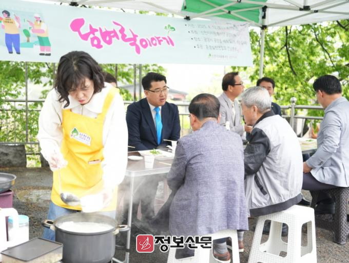 ![]() [사진 제공 = 신천지자원봉사단 광양지부]지난 22일 열린 세승마을 마을잔치에서 조은국 지부장과 주민들, 봉사자들이 함께 식사하며 담소를 나누고 있다. |