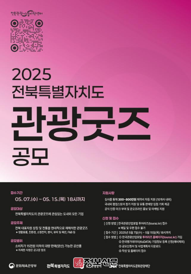 ![]() 전북특별자치도문화관광재단, 관광굿즈 공모전 참여기업 모집 |