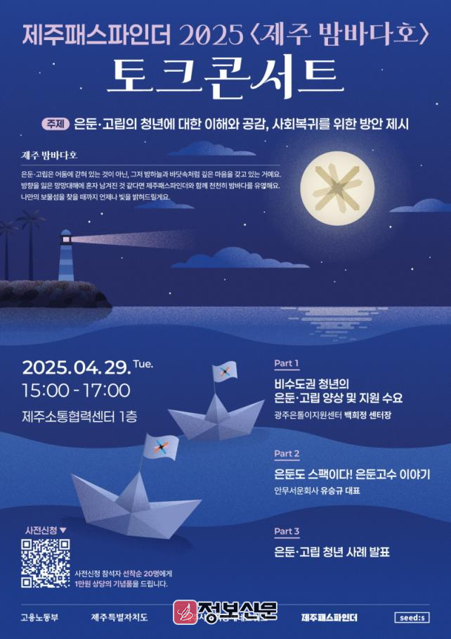 ![]() 제주패스파인더, 은둔·고립 청년 위한 ‘제주 밤바다호’ 토크콘서트 개최 |