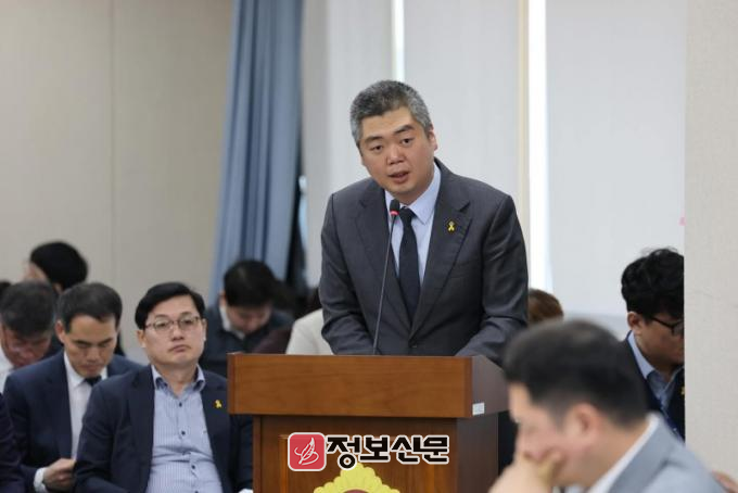 ![]() 박원종 전라남도의원이 지난 4월 16일 제389회 임시회 제1차 교육위원회에서 「전라남도교육청 안전한 운반급식 지원 조례안」에 대해 제안설명하고 있다. |