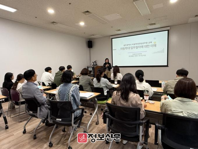 교육은 이상희 아동권리보장원 과장이 ‘아동학대 조사’를, 조새롬 대한법률구조공단 광주지부 변호사가 ‘아동학대 관련 법률’에 대한 강의를 진행했다.