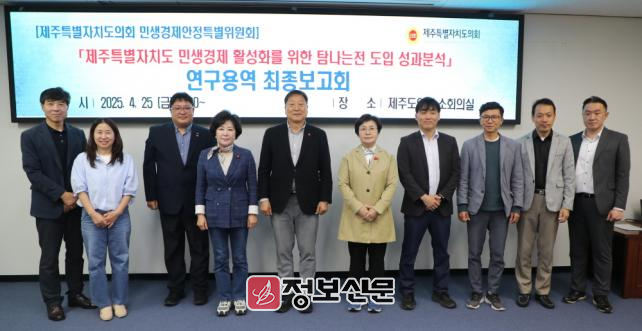 이번 보고회는 지역경제 활성화에 기여하는 탐나는전의 지속 가능한 발전 방안을 모색하기 위해 마련되었으며, 제주특별자치도의회 의원, 관계 공무원, 연구진 등이 참석해 열띤 토론을 벌였다.