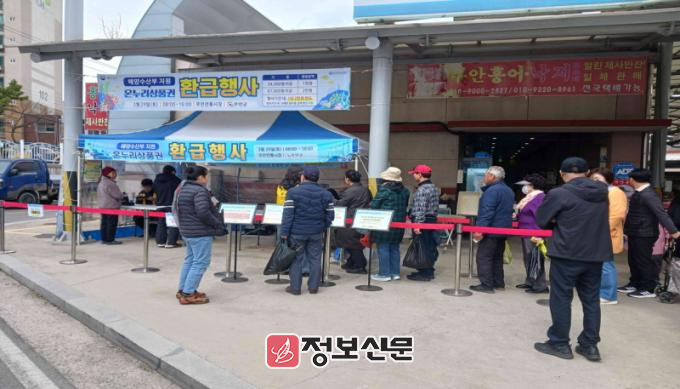 소비자는 국내산 수산물을 구매할 경우 ▲3만 4천 원 이상 구매 시 1만 원, ▲6만 7천 원 이상 구매 시 2만 원을 온누리상품권으로 환급받을 수 있으며, 1인당 최대 2만 원까지 지원받을 수 있다. 총2천만 원 상당의 온누리상품권이 선착순으로 지급되며, 예산 소진 시 행사는 조기 종료될 수 있다.