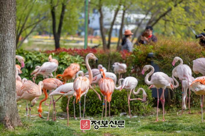 ![]() 순천만국가정원, 물새놀이터에서 휴식 중인 홍학 무리 |