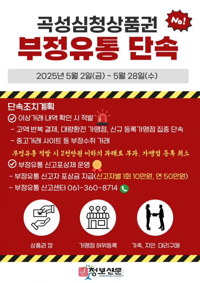 ![]() 곡성군, 심청상품권 부정유통 단속 추진 |