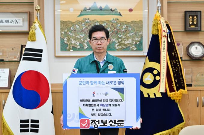 김광열 영덕군수는“멀리서 보내준 진심어린 응원과 실질적인 지원이 군민과 피해자들에게 큰 위로와 힘이 되고 있다.”며 “자매결연도시 해남군의 소중한 마음을 가슴 깊이 새기며 하루빨리 일상을 되찾을 수 있도록 최선을 다하겠다.”며 감사의 마음을 전달해왔다.