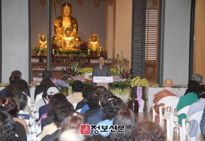 강 시장은 끝으로 “부처님의 지혜와 자비로 온 세상이 평화 가득하기를 기도한다”며 “큰 깨달음으로 중생의 앞길을 밝히신 부처님의 높은 공덕을 기리며 부처님 오신 날 봉축드린다”고 말했다.
