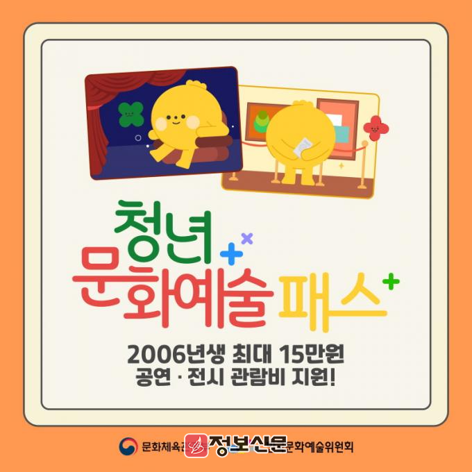 올해는 19세 청년(2006년생)을 대상으로 국비 및 지방비 포함 1인당 15만 원의 문화예술패스를 지원하고 있다. 문화예술패스는 대상자가 예매처(인터파크·예스24)를 통해 발급받고, 순수예술 분야 및 음악콘서트·페스티벌에 사용할 수 있다.