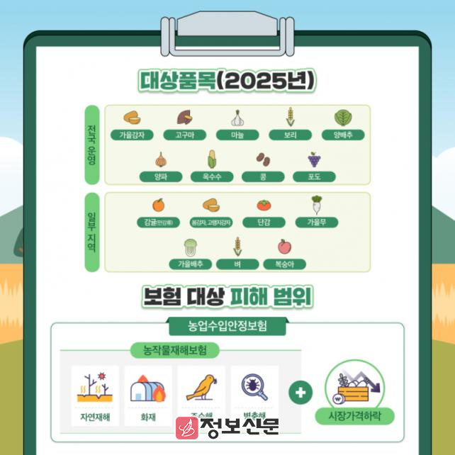 최재용 농생명축산산업국장은 “농업수입안정보험은 기상이변과 가격 변동이라는 복합적인 리스크에 대응할 수 있는 중요한 정책 수단”이라며, “많은 농업인들이 적극적으로 가입해 농가 소득 안정에 실질적인 도움이 되기를 기대한다”고 말했다.
