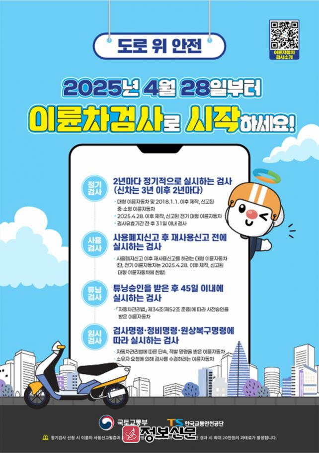 정기검사의 대상은 ▲대형 이륜자동차, ▲‘18년 이후에 제작된 중·소형 이륜자동차, ▲‘25년 4월 28일 이후에 최초로 사용신고를 한 대형 전기이륜자동차 3만 3,339대다.
