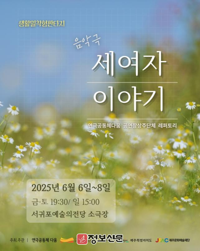 한편, ‘연극공동체 다움’은 창작극, 번역극, 음악극 등 장르를 넘나드는 작업을 통해 관객과의 접점을 지속적으로 확장하고 있다. 공연은 만 12세 이상 관람 가능하며, 관람료는 일반 10,000원, 청소년·장애인·제주4‧3 유족에게는 50% 할인 혜택이 제공된다.