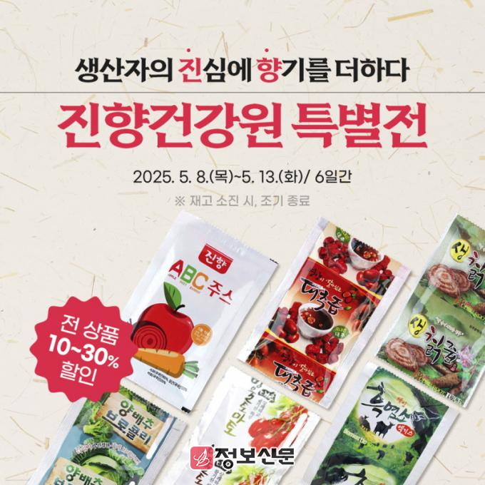 ![]() 곡성군, 곡성몰에서 만나는 건강 쇼핑 진향건강원 최대 30%할인! |