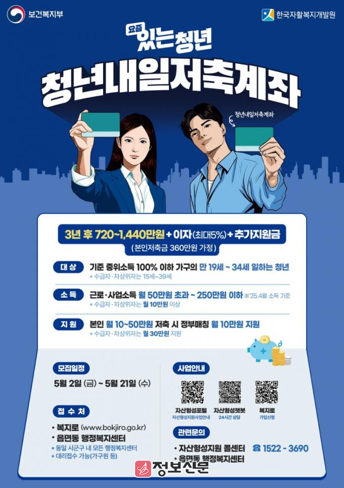 신청은 온라인 복지로 포털(bokjiro.go.kr)이나 주소지 읍면동 행정복지센터에 하면 된다. 대상자 선정 결과는 소득 및 재산 조사 등을 거쳐 오는 8월께 개별 통보한다. 자산형성포털에서도 확인할 수 있다.
