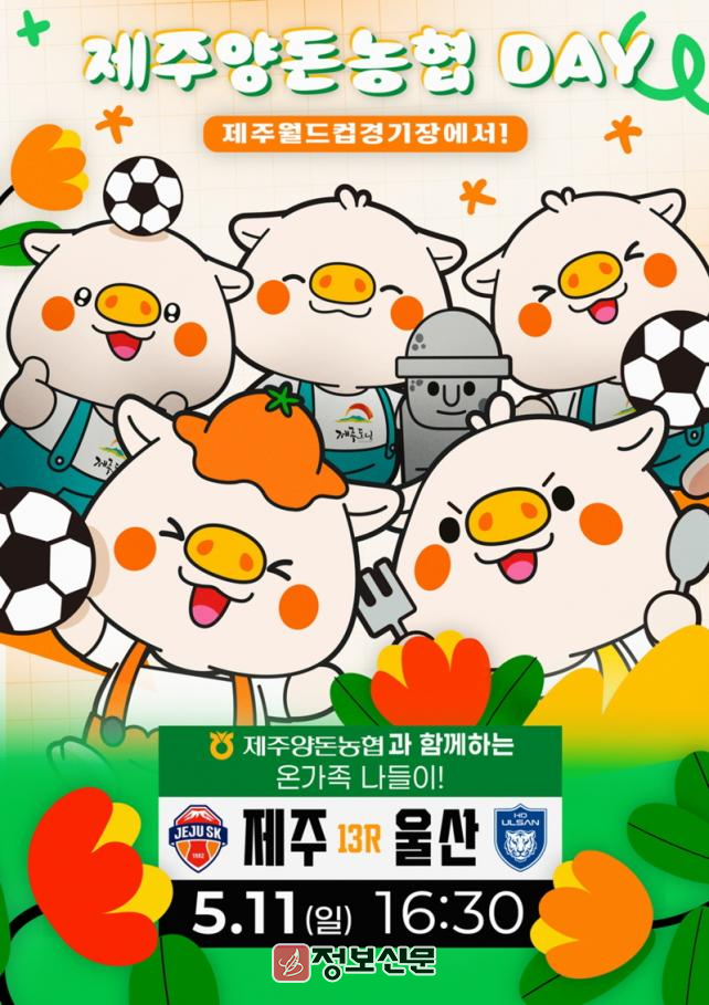 제주SK는 오는 5월 11일(일) 오후 4시30분 제주월드컵경기장에서 열리는 울산과의 하나은행 K리그1 2025 13라운드 홈 경기를 '제주양돈농협 DAY'로 진행한다. 제주양돈농협은 제주SK의 대표적인 후원사다.