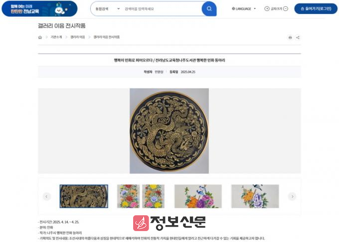 ![]() 전라남도교육청, 갤러리 이음 온라인 공간과 병행 운영 |