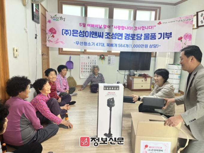 이날 조성면사무소와 매곡경로당에서 전달식이 이뤄졌으며, 조성면 내 47개 경로당에 무선 청소기 47대, 목베개 564개(경로당 별 12개)가 전달됐다.